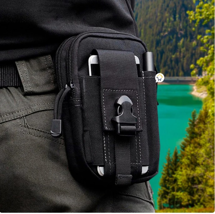 Con dos compartimentos principales con cremalleras dobles y divisores internos, tendrás todo tu equipo esencial organizado: teléfono (hasta 6.2”), linterna, navaja, cargadores, GPS, documentos, gafas o lo que necesites. La hebilla frontal añade seguridad extra para tus pertenencias incluso en movimiento.