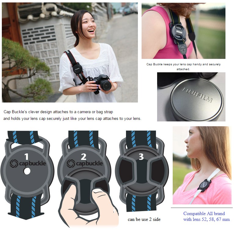 Se fija fácilmente a la correa de su cámara.La tapa de la lente está firmemente en la tapa Buckle